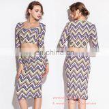 Sexy Midriff-baring Wave Patterns Ladies Dress Suits