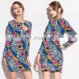 Europe And America Fashion Sexy Split Joint Printing Package Hip One-Piece Dress