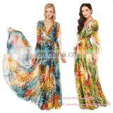 Hot Selling Big Flap Printed Long Sexy Women Chiffon Dress