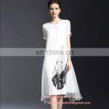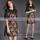 High Qulaity Printed Imitation Silk Short Sleeve Ladies Dress
