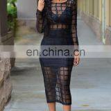 Europe And America Long Sleeve Sexy Perspectivity One-Piece Dress