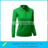 Green Color Customized Knitted Neck Woman's Long Sleeve Golf Shirt