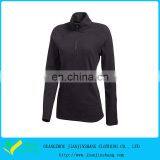 Black Color Turtle Neck Raglan Sleeve Polyester Zip Polo Shirts For Lady