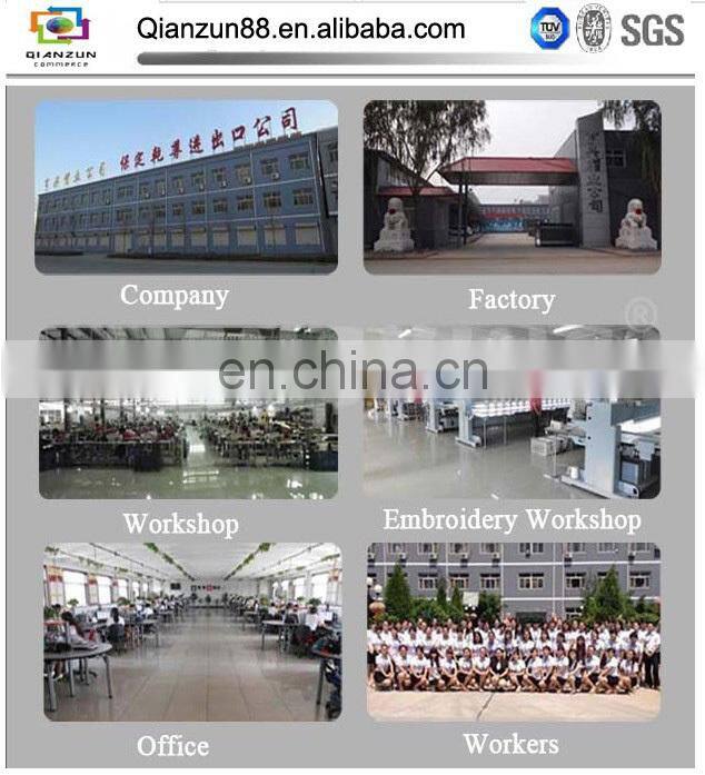 Baoding Qianzun Import And Export Co., Ltd. is a manufacturer of various kinds of caps and bags, with well-equipped testing equipment and strong technical force. With a wide range, good quality, reasonable prices and stylish designs, our products are extensively used in fashion and clothing industry and other industries.We are located in Baigou Town, Gaobeidian City, Hebei Province. Our company has independent import and export rights. We are located in the center of Beijing City and Tianjin City, enjoying convenient transportation. All our products are exported to foreign countries, enjoying very high popularity. We win the trust and praises from our customers for superior product quality and timely shipment. We sincerely hope to cooperate with many companies and help you to find and develop markets. For more information, just feel free to contact us.