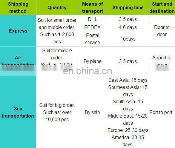 If small order, we can send products to you by DHL,SF, Fedex, UPS, EMS and so on.