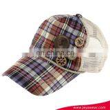 Plaid Mesh Trucker Baseball Cap Washed Hat With Wooden Button