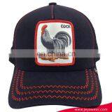 Custom Leather Baseball Cap Cool Mesh Trucker Hat With Cock Logo Patch