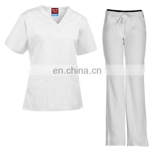 Customized White Poly/cotton Hospital Nurse Scrub Uniform, Doctor Clothes