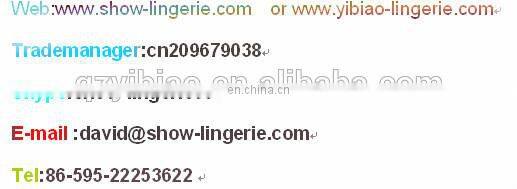 | 1) Professional sexy lingerie supplier for 6 years, all our products with wholesale price and high quanlity . 2) Various styles, latest designs, can mix order with designs,sizes, colors.. 3) Small order accept,big order discount 2%-15% 4). Accept OEM,no minimum order for each style 5) .48 hoursdelivery after you pay |