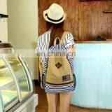Europe Style Deep Coffee Stripe Canvas Backpack