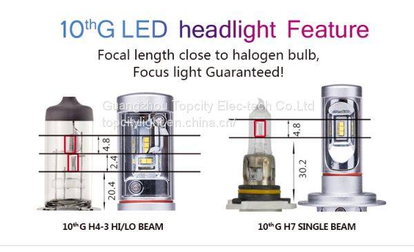 Topcity Unique Mold Super Bright LED Lights H4 6000lm Car Auto LED Headlight