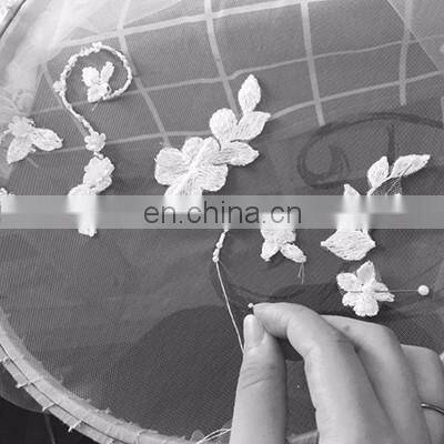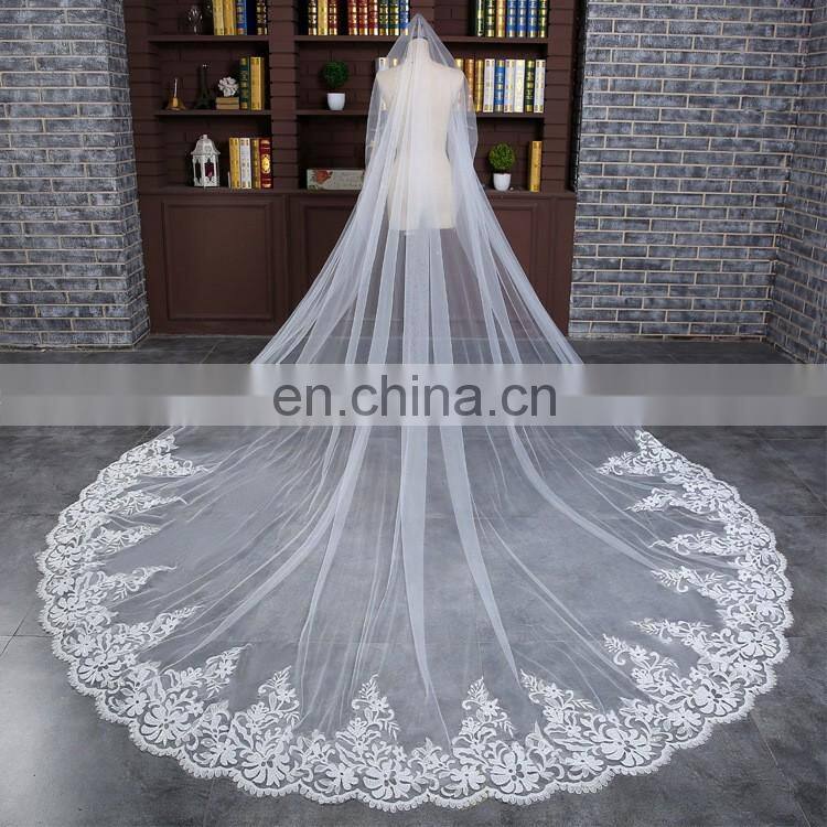 HSP1703 White 3 Meters Long Bridal Veils 1 Tier Layer Vintage Wedding Accessories Wedding Veil Lace Appliques