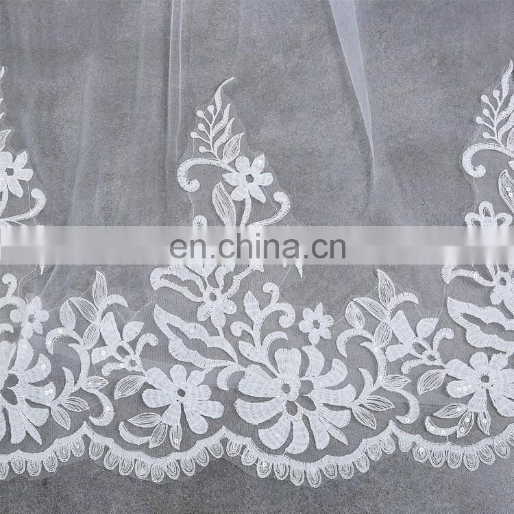 HSP1704 High Quality Lace Appliqued Veil Wedding Bridal Long Cathedral