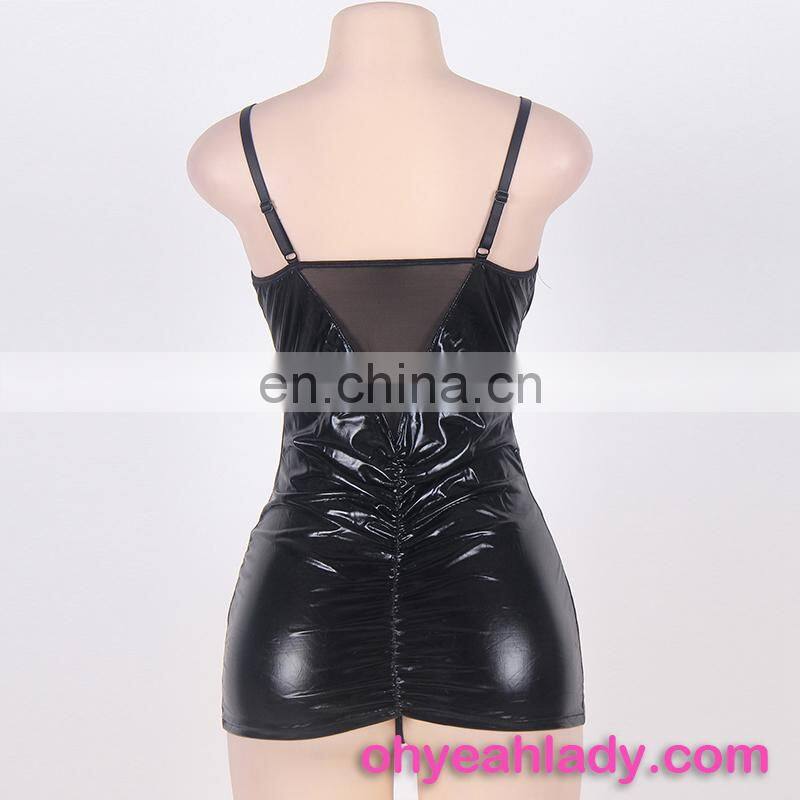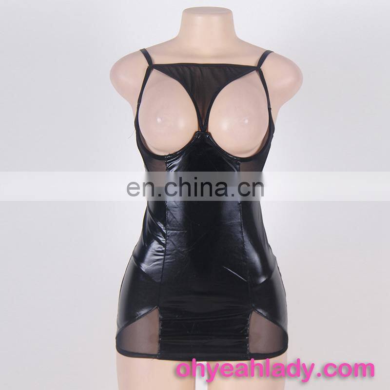 Four Size In Stock Low MOQ Sexy Leather Lingerie Showing Nipples