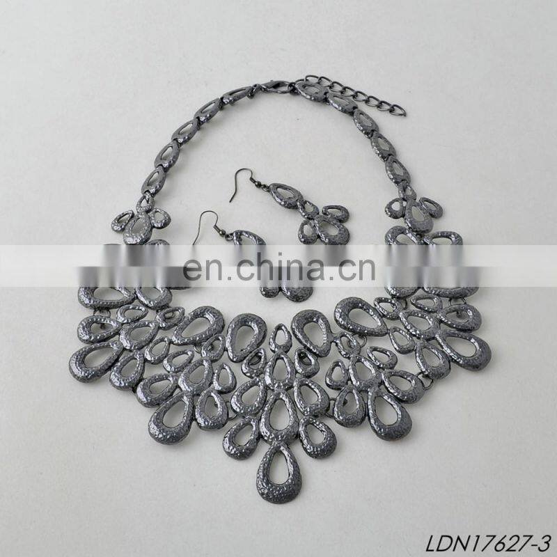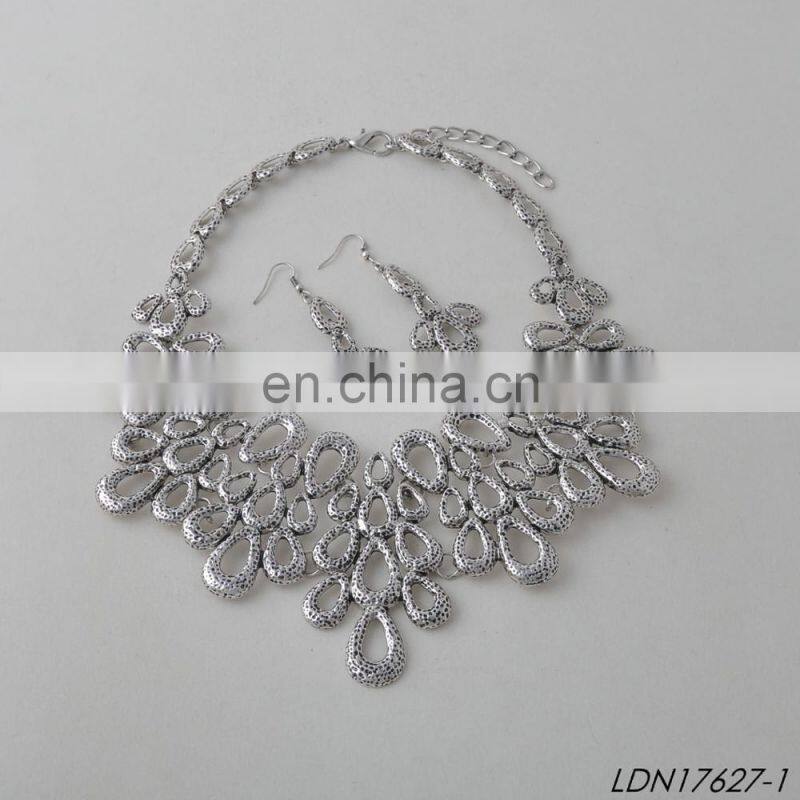 Home > Products > New arrival~ > Antique Silver Hammered Oval Shape Statement Necklace and Earring Set
