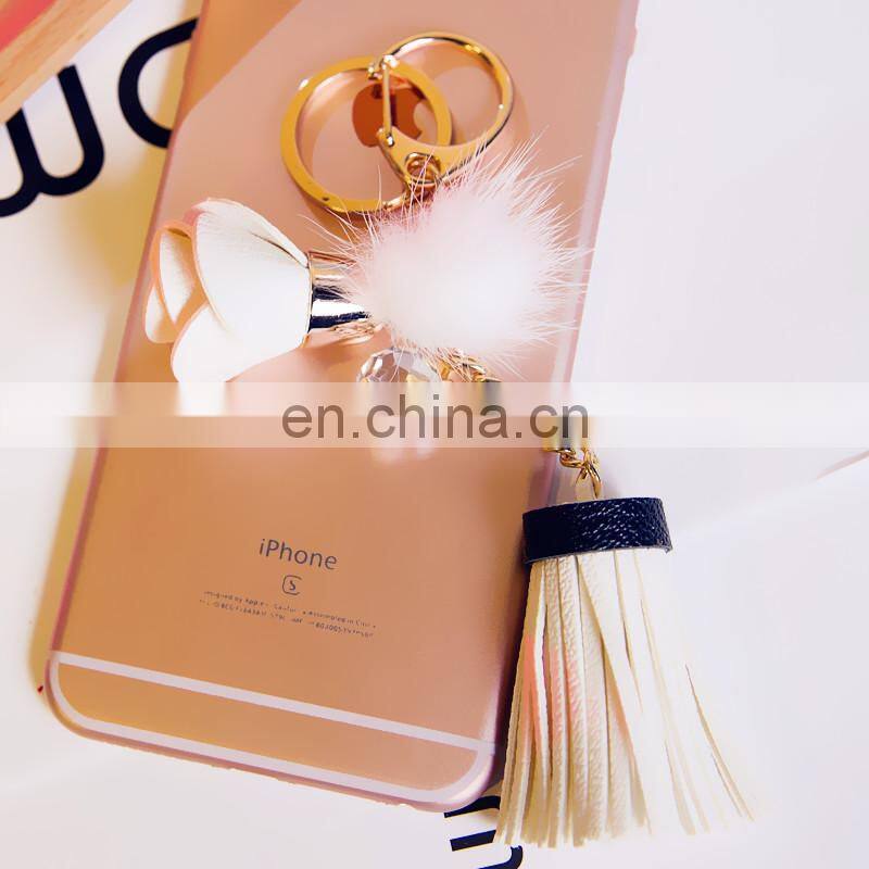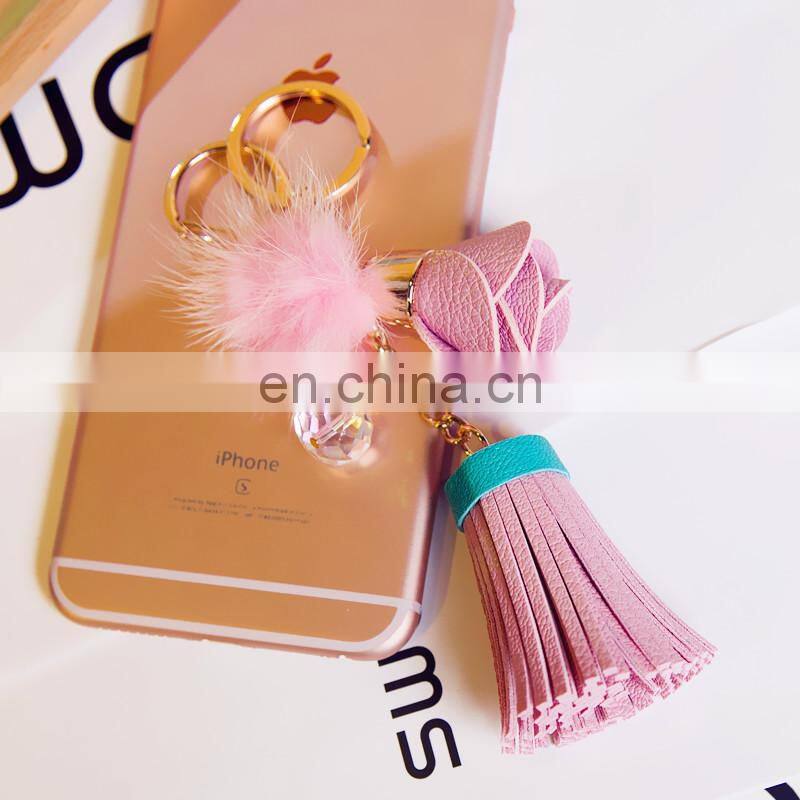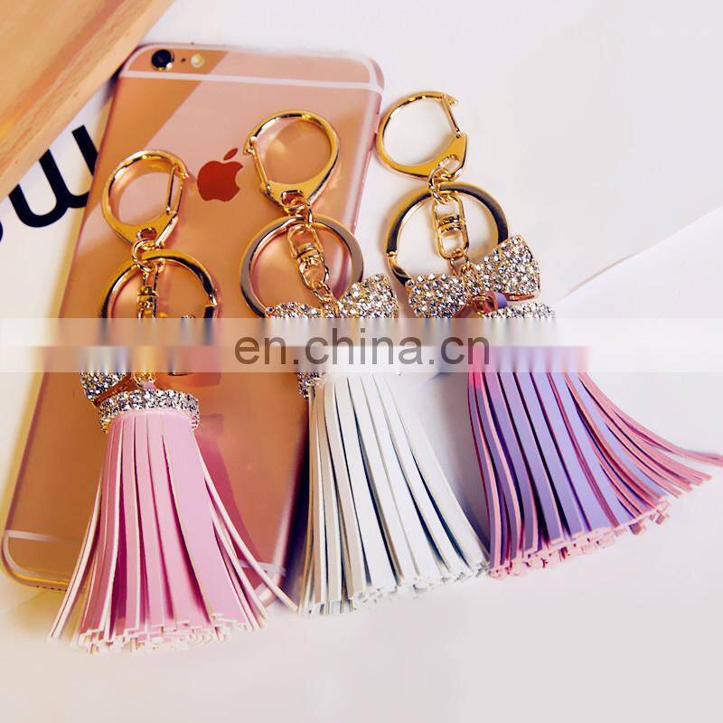 New Arrival Micro Leather Tassel Keychain Crystal Bow Bag Keychain Car Accessories