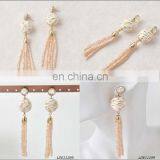 Glass Tassel Beaded Earrings Pom Pom Style Earrings Thread Ball Earrings