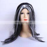 Long Straight Hair Witch Wigs Black White Mixed Cosplay Wig