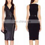 2015 Winter Mini Style Deep v Neck Faux Leather Dress