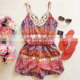 Lace Print Spaghetti Strap Designs Playsuit Jumpsuit for Adult