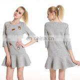 Autumn New Arrival Round Neck Long Sleeve Fancy Women Shift Dress