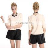 Powersweet 2014 Autumn Hot Sale Fashionable Half Sleeve Woven Fashion Blouse With Zipper On Back