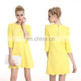 PowerSweet 2014 Elegant Top Design Pure Yellow Fashion Half Sleeve Embroider Short Casual Dress For Ladies