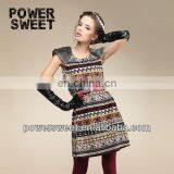PowerSweet 2014 New Design Elegant Top Quality Autumn Long Sleeve Skater Skirt For Woman