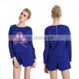 PowerSweet 2014 New Design Autumn Beaded Patterns Long Sleeve Two Pieces Blouse And Shorts For Woman