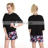 European Winter Style Latest Fashion Unique Floral Beaded Top and Mini Skirt Set
