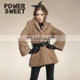 2013 Latest Design With Belt European Fashion Style Winter Wool Coats Fur Coat