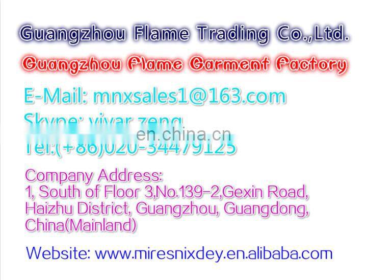 Guangzhou Flame Trading Co.,Ltd which is specialized in Women Garment such as Women Dress,Coat,Pants,Sweater ect.is established in 2013.we have two factories ,one is in Zhongda Fabric Market,Another is in Panyu District.which is establised in 1993, about 10000 squre meters with over 200 stuffs ,including 6 designers,5QC.our customer comes from America,French,Italy,UK,Poland ect.The purpose of our company is to provide the high quality whith best price in fast delivery to give best serive for our customer.