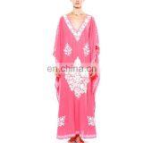 Hot Sale Pink Robe Muslim Abaya Women Round Neckline Long Sleeve Muslin Dress