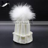 Hot Sale Fur Bobble Baby Beanies Knitted Winter Beanie Kids Fur Hats