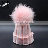 Fashion Kids Winter Knitted Raccoon Fur Pompom 100% Acrylic Knitted Beanie Hat
