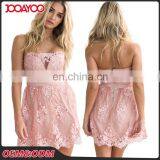 High Quality Oem & Odm Custom Deep V Rose Mini Sexy Halter Women Lace Dress