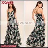 Fashion Woman Floral Printing Ladies Dresses Spaghetti Strap Long Maxi Dress for Summer