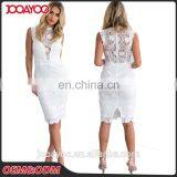 2017 New Fashion Customed Sleeveless White Midi Brand Pretty Women Lace Dress