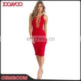 Hot Sleeveless Lady Fancy Red Bodycon Dress Halter Midi Bandage Sexy Club Dress