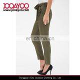 Hot Selling Latest Long Pants Dark Olive Tie Waist Ladies Wrap Pants