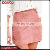Women Fashion Mini Skirt Designs High Waist A-line Pink Faux Suede Mini Skirt