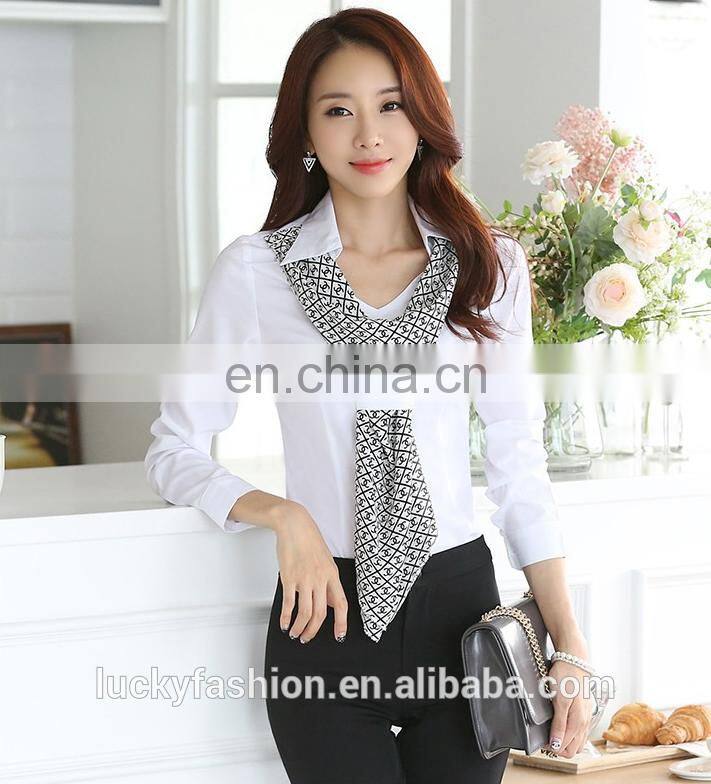 Lucky fashion is a clothing manufacturer, factory located in Guangdong, China. Lucky do OEM & ODM service. Customer could have their own design/logo on the Autumn new arrival 2016 fashion Business shirt slim formal scarf collar long-sleeve women blouse office plus size. Lucky are able to help you to create new products and enrich your clothing line.
