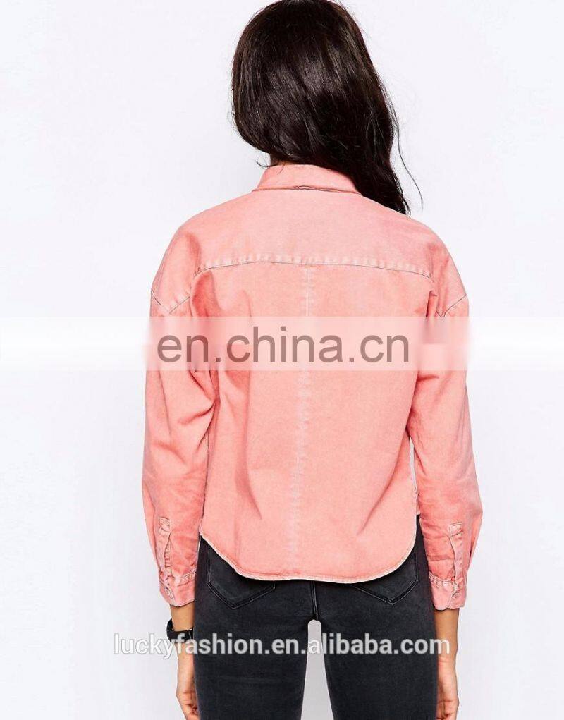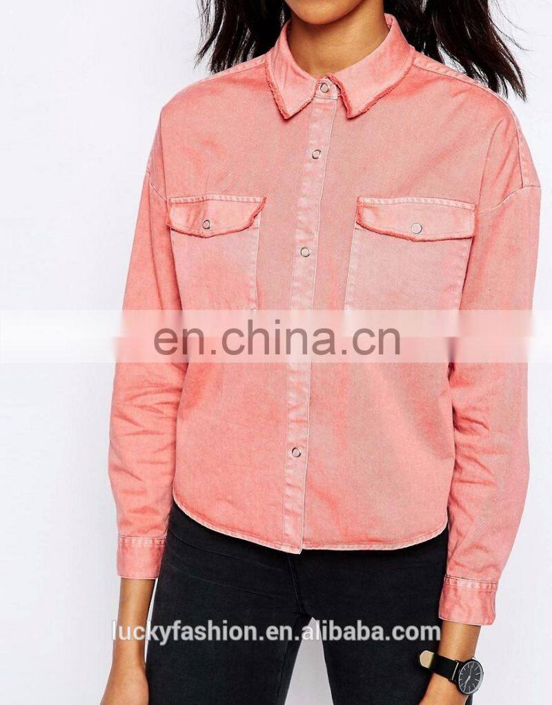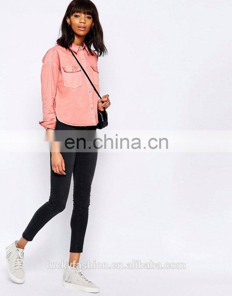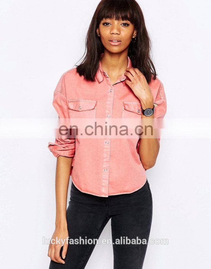 Lucky fashion is a clothing manufacturer, factory located in Guangdong, China. Lucky do OEM & ODM service. Customer could have their own design/logo on 2017 Latest Pink Color With Pockets Long Sleeve Women 100% Cotton New Style Casual Shirt. Lucky are able to help you to create new products and enrich your clothing line.