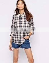 Custom Casual Loose Soft-touch Flannel Boyfriend Button Up Shirt in Check Shirt