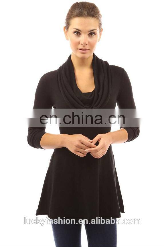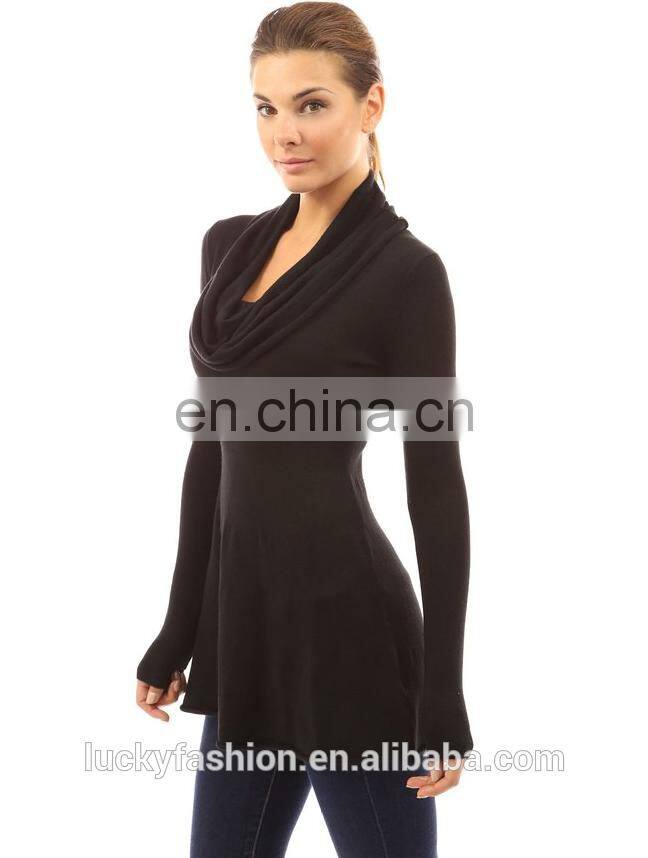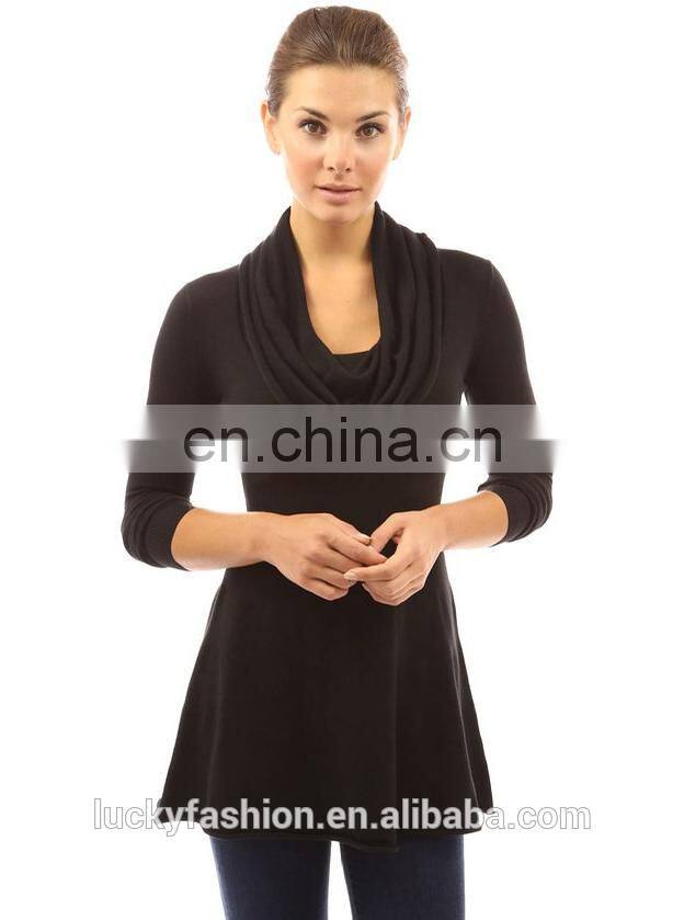 2016 BAIYIMO Wholesale Women's Cowl Neck A-Line Tunic Sweater