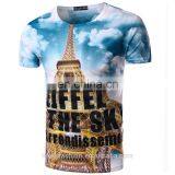 Brand New Style Wholesale Cheap Eiffel Tower 3D Printing Slim Fit T Shirt For Men