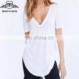 China Wholesale Short Sleeve V Neck Longline Blank Women Custom T Shirt