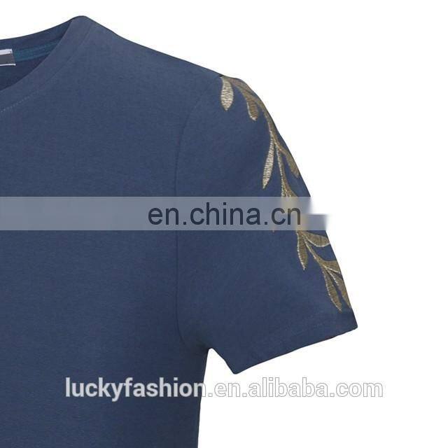 Manufactory Custom Embroidery on Sleeve 100% Cotton T Shirt