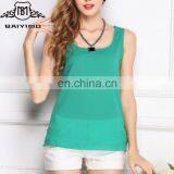 BAIYIMO Stylish Women Sleeveless Patchwork Chiffon Solid Color Tank Tops