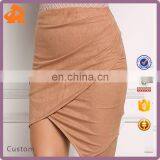 2017 Woman Hot Sale New Design Camel Suedette Surplice Slit Skirt